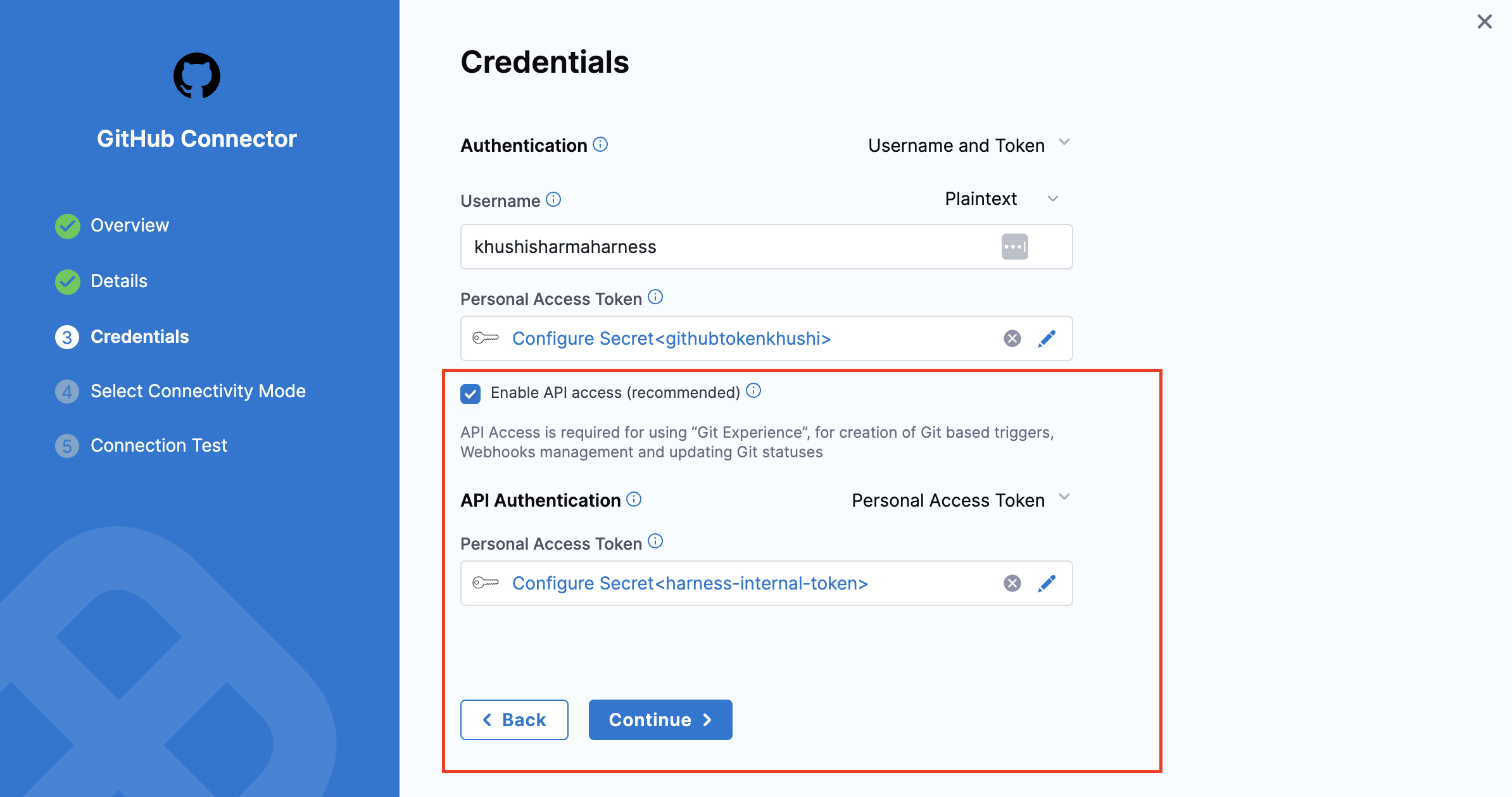 - From the dropdown under Select GitHub Connector either select an already present connector or create +New Connector.