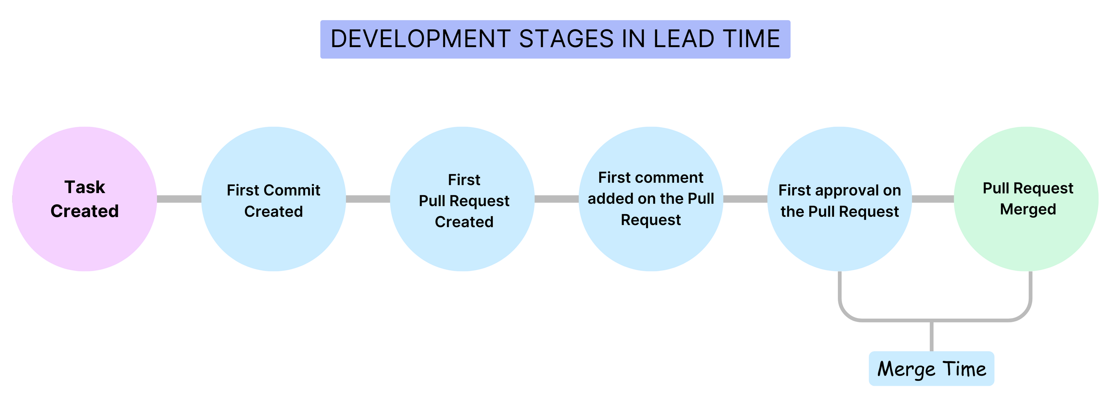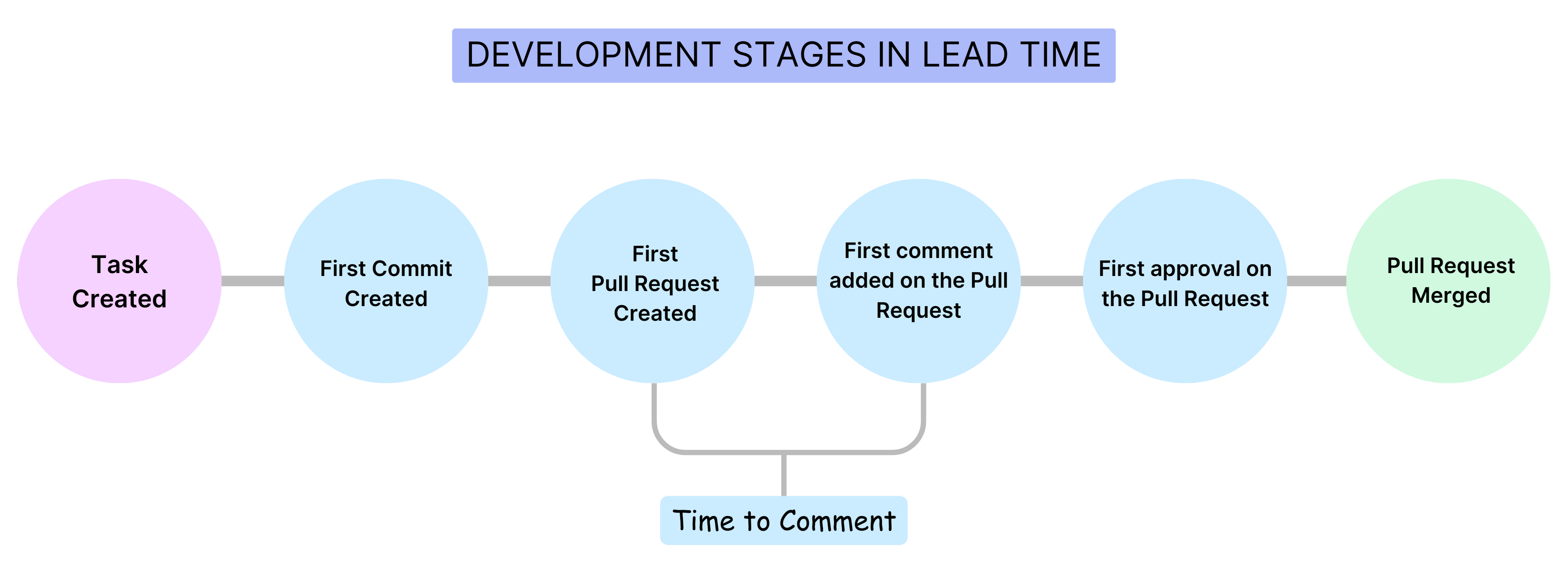 The specific events or stages considered in a lead time calculation depend on the report and the stages defined in the associated [Workflow profile]/docs/software-engineering-insights/propelo-sei/setup-sei/sei-profiles/workflow-profiles/velocity-profile). The lead time ultimately depends on the stages that a PR or issue actually goes through. For example, if there are no comments on the a, then the time to comment is zero.
