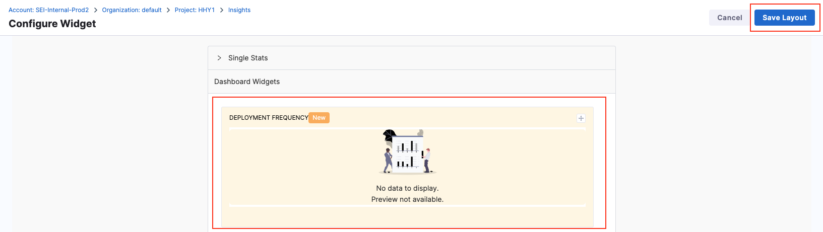 - Select the Deployment Frequency widget.