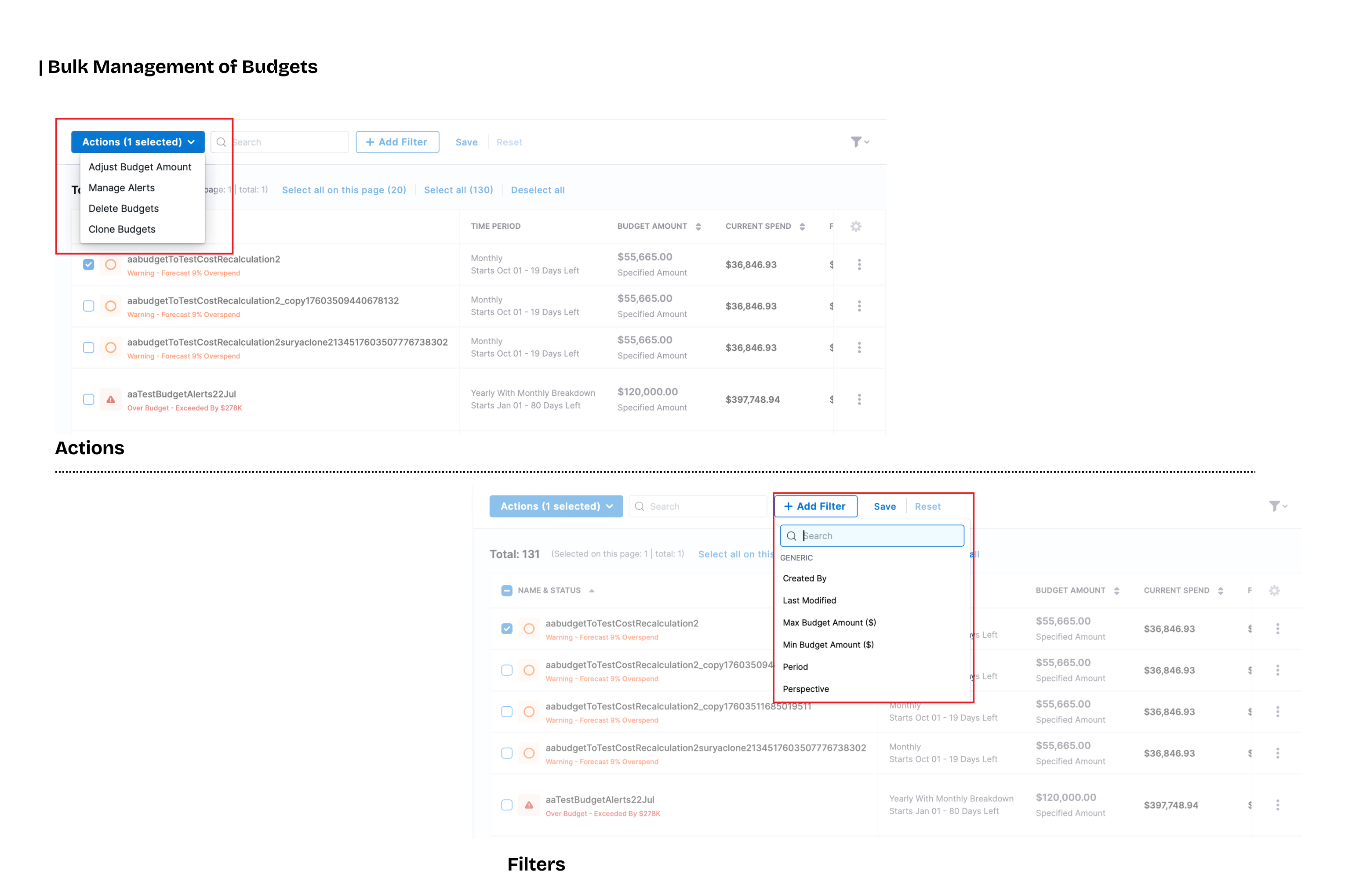 [New Feature] Bulk Management and Filtering in Budgets