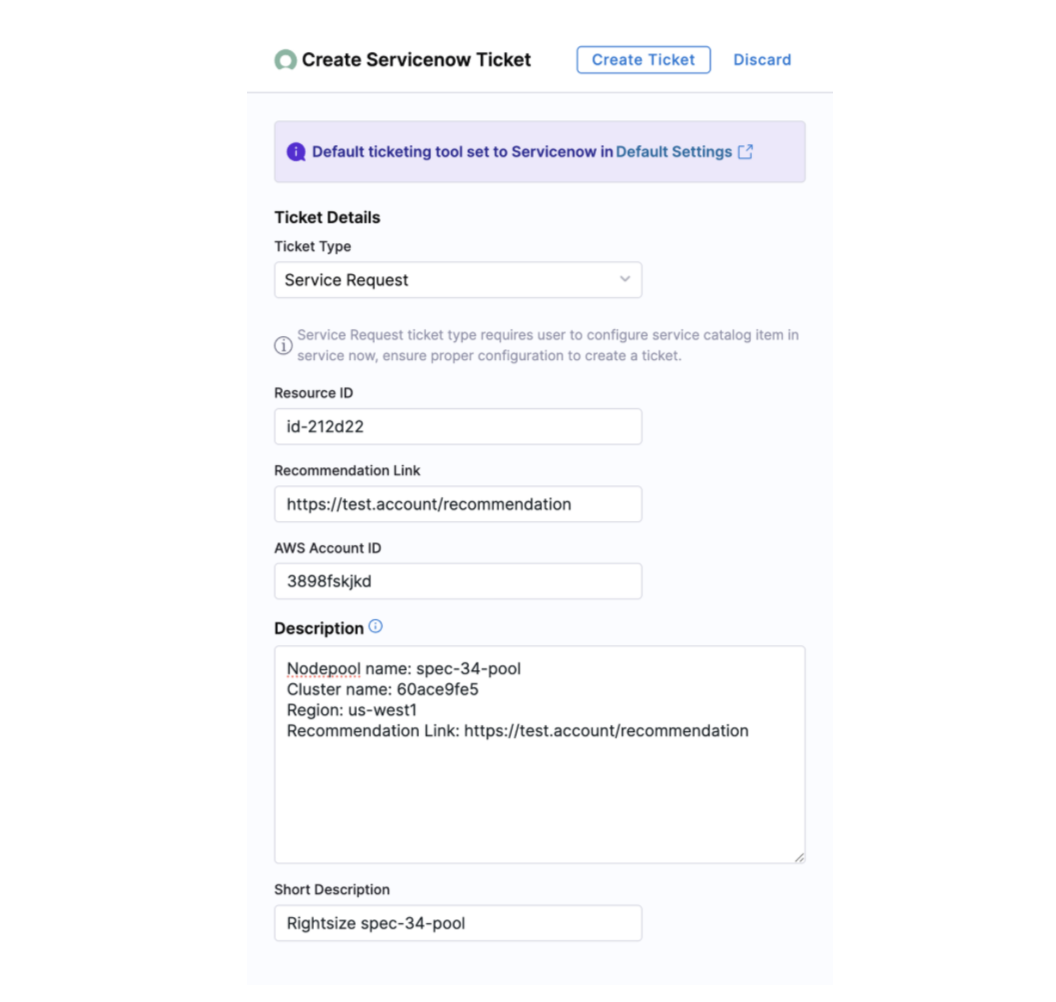 Enhanced Ticket Management for ServiceNow: Added support for "Service Request" ticket type for our ServiceNow integration for recommendations. Using Service Request tickets, customers can manage recommendations more easily with automated workflows and auto-discovery. Ticket lifecycle can be managed using proper fulfillment and approvals.